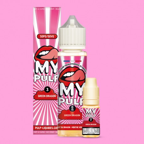 Star de la marque My Pulp, notre Green Dragon est né d’un mélange audacieux du fruit du dragon et du kiwi rehaussé d’un soupçon de menthe verte qui vient réveiller vos papilles tout en élégance. Désormais décliné en Pack 60 ml, il existe en 3 et 6 mg.